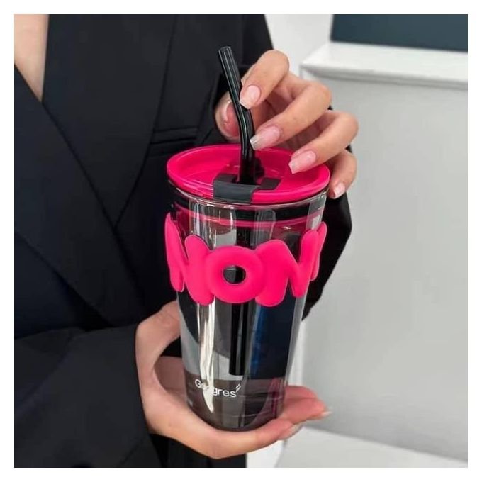Gobelet réutilisable de 450ml, équipé d’une paille et d’un manchon décoratif en silicone pour une prise en main confortable et sécurisée. Idéal pour café, thé, jus, smoothies, eau et boissons froides ou tièdes.
